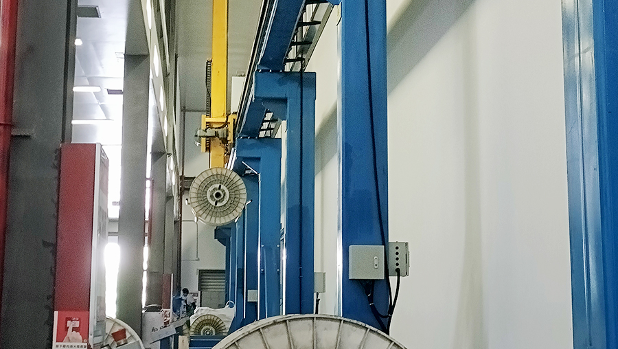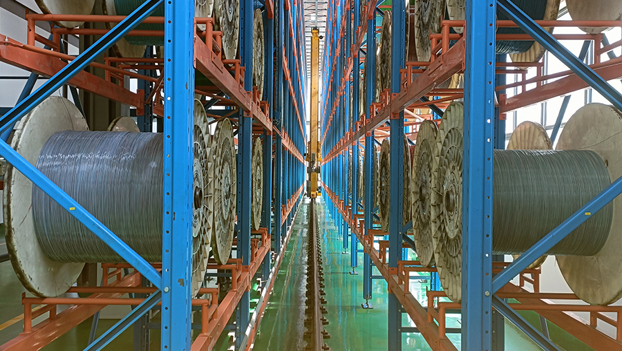 該客戶是一家主要主要從事光纖預制棒的研發、生產和銷售的國家級高新技術企業,主導產品涵蓋了光纖預制棒和光纖、光纜。客戶需求為光纖預制棒的儲存,進出庫、生產線對接。產線節拍光纖預制棒各90盤/h,立庫能力為 450盤/h,24小時/天制