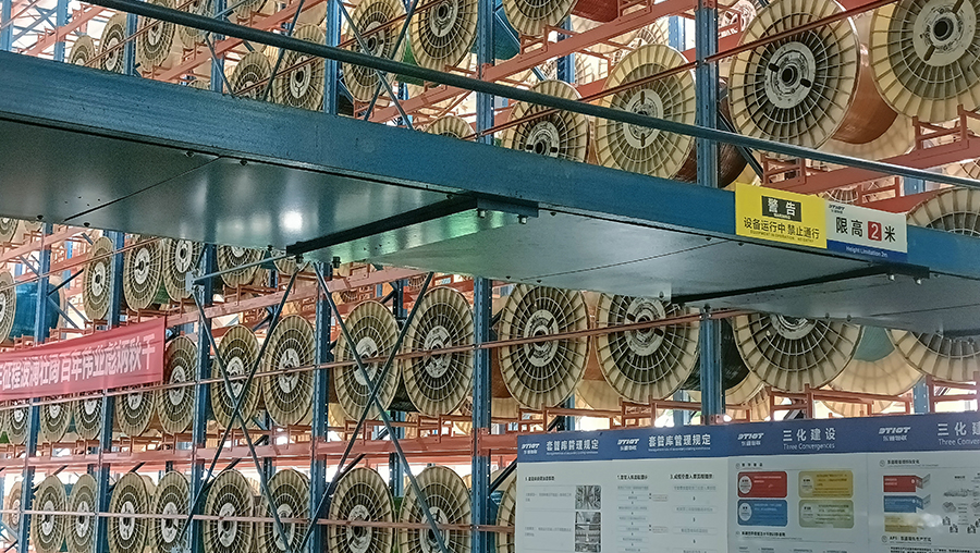 該客戶是一家主要從事戰略性新興產業發展的國家級高新技術企業,主導產品涵蓋了光纖預制棒和光纖、光纜。客戶需求為本纖和色纖盤的儲存,進出庫、生產線對接。產線節拍本纖和色纖各100盤/h,立庫能力為 400盤/h,24小時/天制
